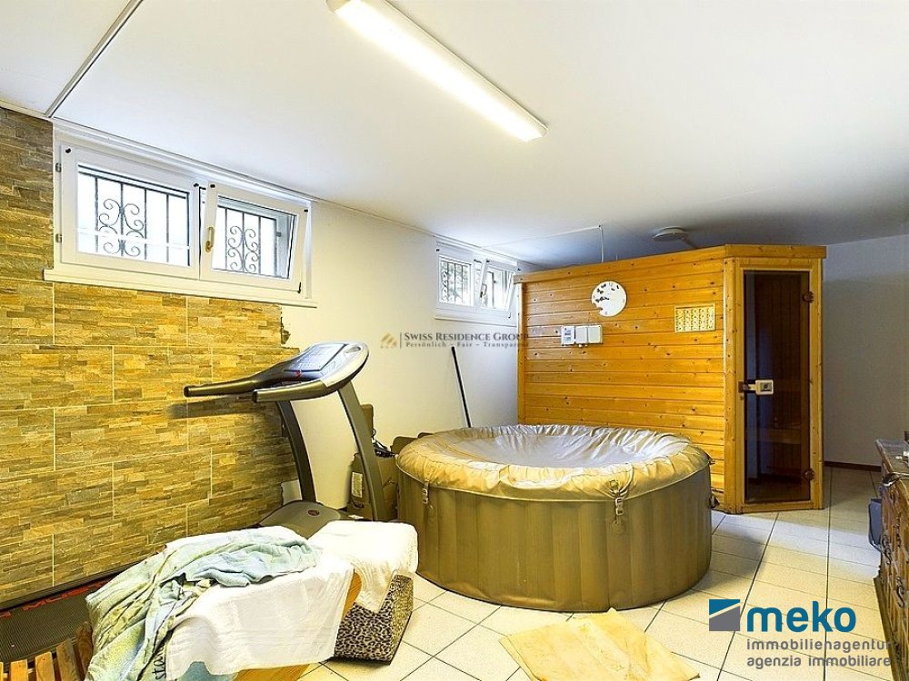 Ein besonderes Highlight ist die private Sauna im Untergeschoss – perfekt zum Entspannen nach dem Sport. Die Villa verfügt über 5,5 Zimmer, darunter ein eleganter Ankleideraum aus hochwertigem italienischem Holz.